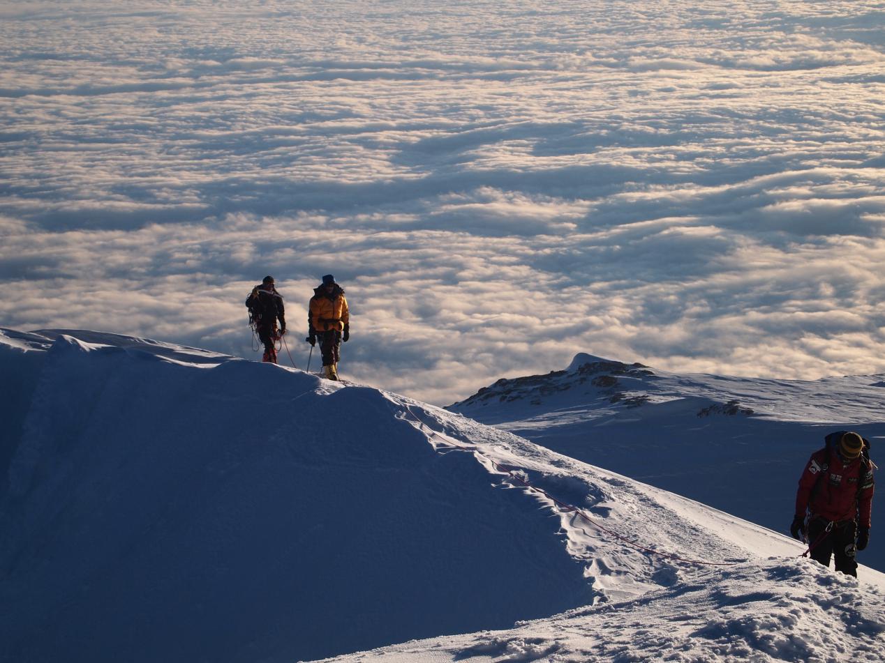 C5-顶峰:横切一个非常陡峭的山脊,下降过程的滑坠。