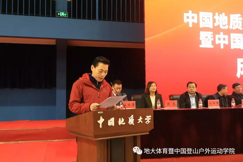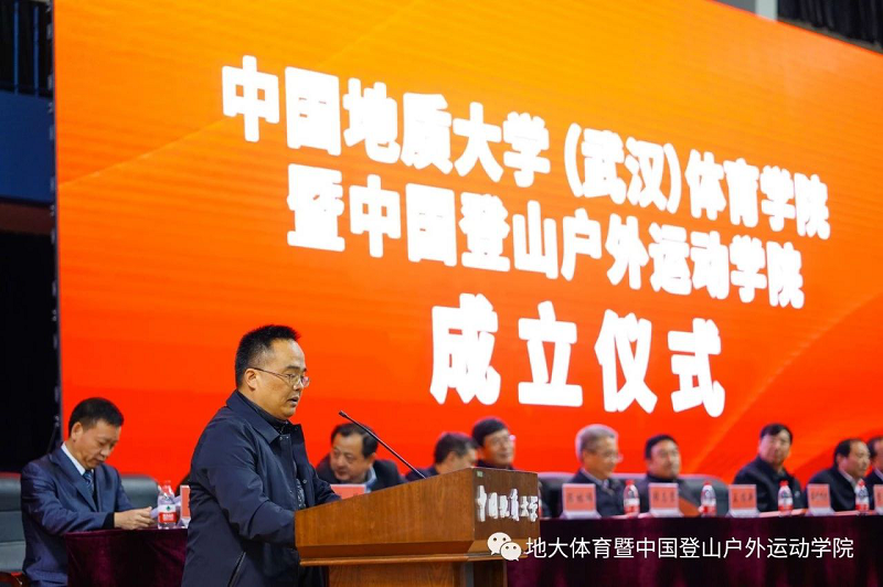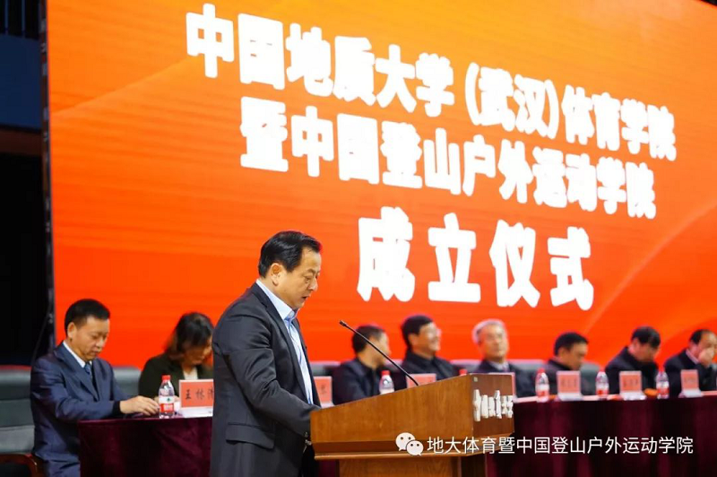 湖北省体育局局长胡功民同志在致辞中表达了对中国地质大学(武汉)成立91亚洲精品国产中文和中国登山户外运动学院的祝贺,表示学院的成立对湖北省户外运动有着时代性的意义。