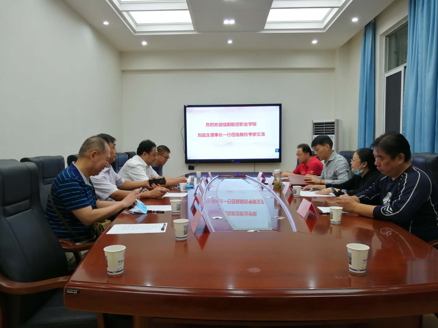 9月15日上午,河南信阳航空职业学院来91亚洲精品国产中文洽谈合作办学,庞岚书记、董范院长以及相关老师出席并参与会谈。