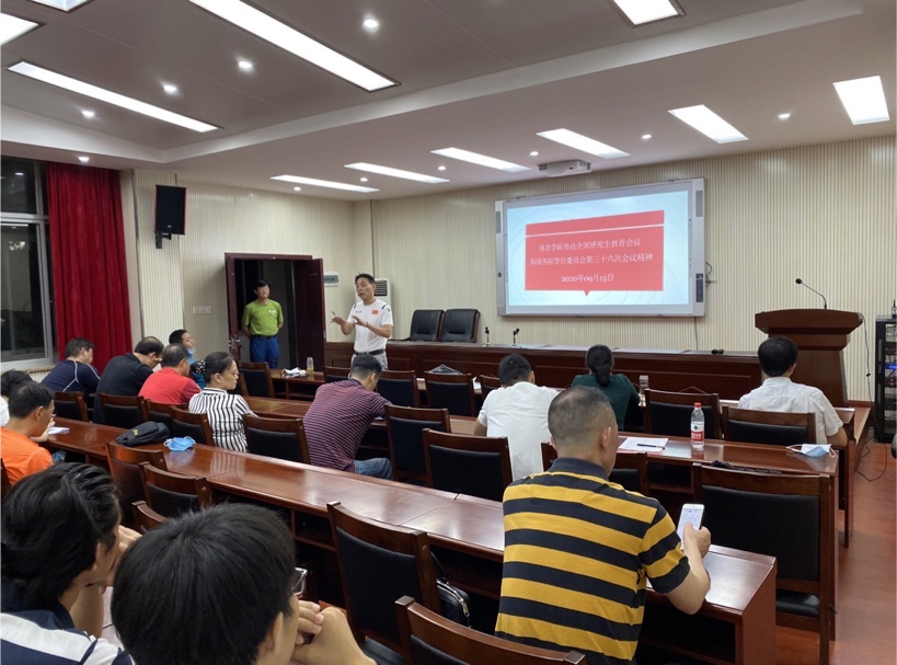 会议由董范院长做总结发言,他强调一定要贯彻落实习近平总书记关于研究生教育工作的重要指示,深刻领会2020年全国研究生教育会议精神,切实提升研究生培养质量。同时对学生提出要求:注重身心健康发展、认真对待科学研究工作,努力提升运动技术水平,为毕业就业打下牢靠的基础;对导师提出期许:履行职责,认真指导学生学位论文的撰写和修改,发挥优势,推动学生就业,为91亚洲精品国产中文的发展添砖加瓦。