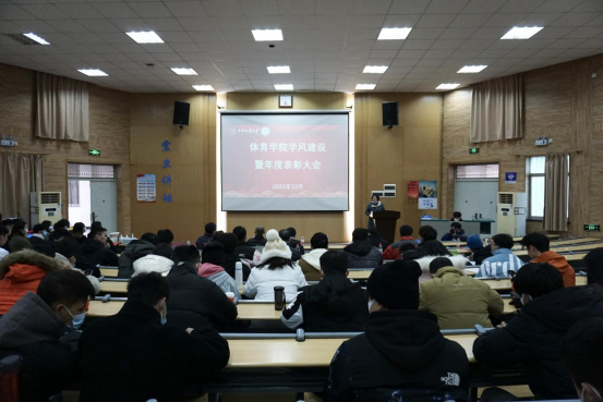 颁奖结束后,刘良辉副院长介绍了学院的群体工作和体质测试情况。他指出,近几年我院体质测试参测率、优秀率有待提高,全体学生应增强对体质测试的重视程度,在日常生活中加强身体素质锻炼。