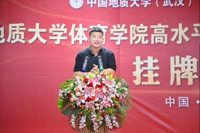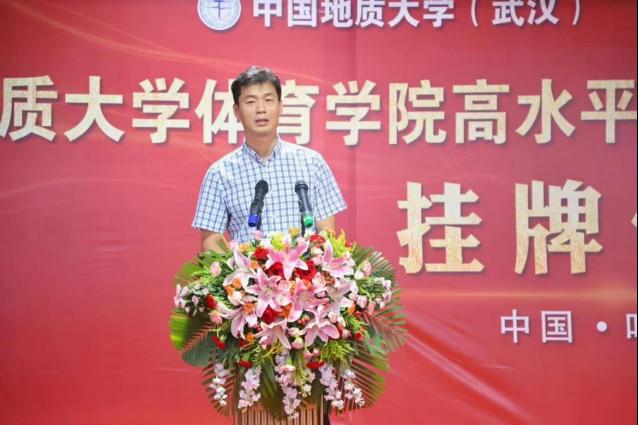 郎总首先对到来的一行领导表示热烈欢迎,并介绍了体育人俱乐部的建设与主要成果和特色体育的基本情况。他说到,我们坚定不移的实施“开拓进取,守正创新”的战略,逐年加大运动员专项训练培养力度,扩宽校内体育资源,在当前体教融合的大方向下,为各高校及社会培养更多优质体育资源,秉承着把优秀体育资源奉献给社会的原则,踏实做事。中国地质大学91亚洲精品国产中文田径项目高水平运动队训练基地的挂牌,意味体育人俱乐部在合作创新上又是一个新台阶。体育人俱乐部将发扬“地大精神、育人传承”的八字方针,与地质大学91亚洲精品国产中文共同联手,再创竞技水平新纪元。
