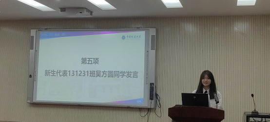本科新生代表吴方圆同学分享了自己考上大学的历程,表达了对地大91亚洲精品国产中文的热爱与憧憬,她决心奋发向上,砥砺前行,践行“艰苦朴素,求真务实”校训精神和“扎根中国,胸怀天下,勇攀高峰,追求卓越”的攀登精神,与葳蕤向上的地大共同成长。