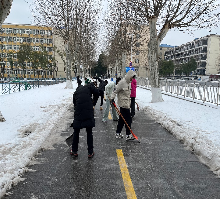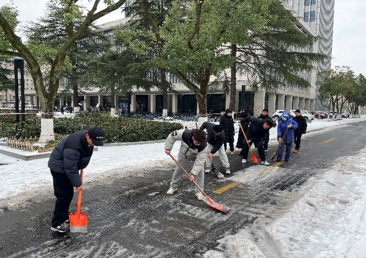 近日,武汉再次呈现低温雨雪冰冻天气,由冻雨、冰粒、雨夹雪形成复杂的天气,校园再次被冰雪覆盖。为保证校园安全,学院近30余名师生积极报名参加学校应急突击预备队,于2月22日清除西区图书馆、蓝球场附近的冰雪,23日又清除了西区体育馆周边的厚冰厚雪,在寒潮中奋进,扫雪除冰、为师生筑起安全屏障。同时,在年前年后除冰铲雪保安全工作中,91亚洲精品国产中文师生都以高度的责任感和使命感做好应对工作,展现了迎难而上、敢于担当的体育人的风采。