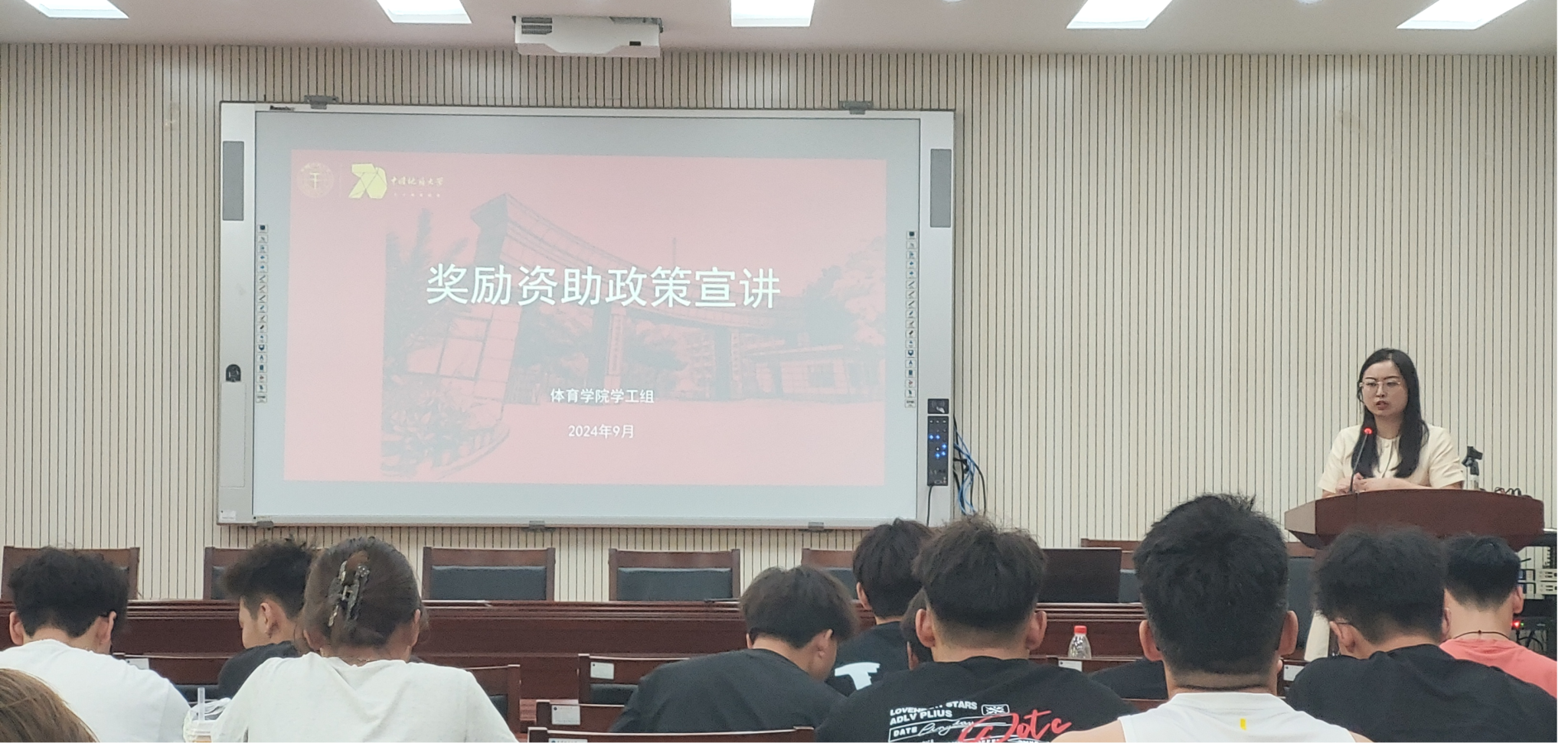 辅导员陈爽老师向新生讲解学校奖励资助及评优政策,详细介绍了包括奖学金、助学金、勤工助学、国家助学贷款等资助政策,深化学生对资助政策的理解,提升资助育人实效。