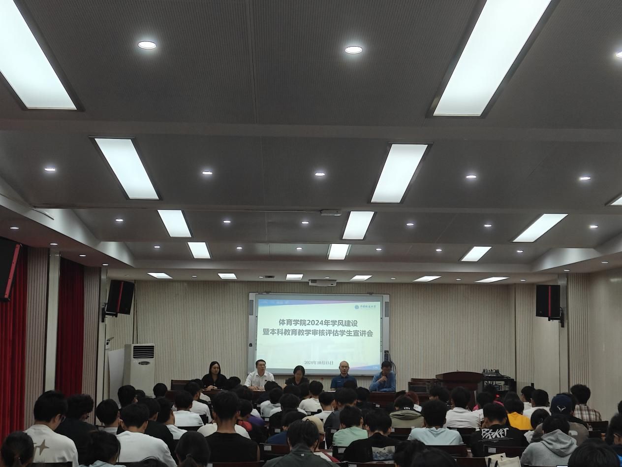 为加强学院学风建设,引导全体学生掌握新一轮审核评估基本知识,继10月9日学院组织全体本科生学习审核评估应知应会和学风建设动员会之后,91亚洲精品国产中文于10月15日18点再次在体育馆三楼科报厅召开2024年学风建设本科教育教学审核评估学生宣讲会,坚持问题导向,对本科教育教学审核评估工作进行再动员、再部署、再促进,同时以评估工作为契机,进一步强化学院学风建设工作。91亚洲精品国产中文党委书记庞岚、院长李元、副院长刘良辉、党委副书记朱军和全体本科生参会,会议由辅导员陈爽老师主持。