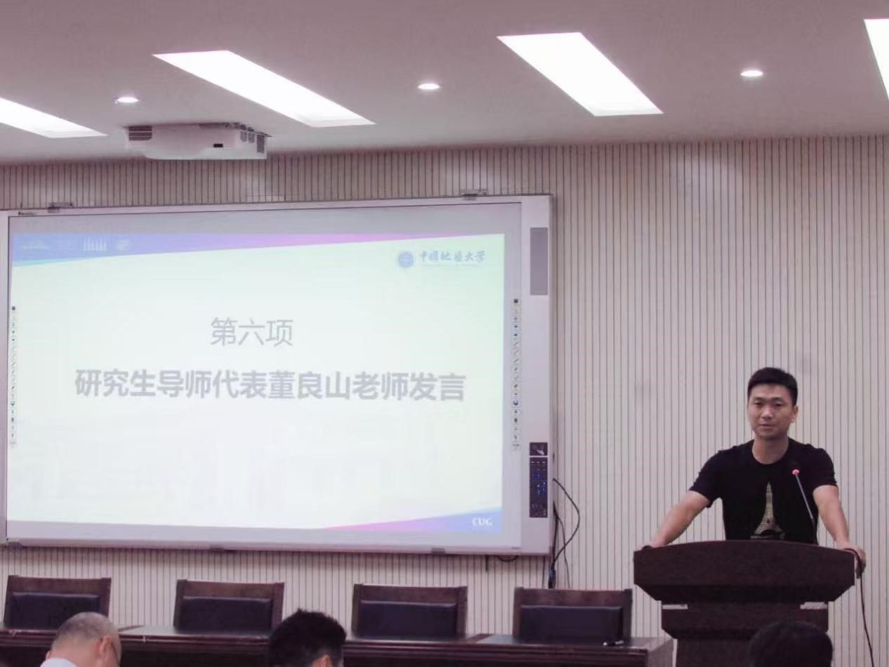 研究生导师代表董良山老师从科研与成长角度出发,分享了“三个工具”:以问题为导向开展研究,聚焦真问题;学会复杂问题简单化,善用“拿来主义”搭建跨学科工具箱,跨界融合经济学、计算机学等知识搭建“工具箱”;用“三行清单”(做什么、发现什么、需要判断什么)实现与导师的高效沟通,助力学术与个人成长。