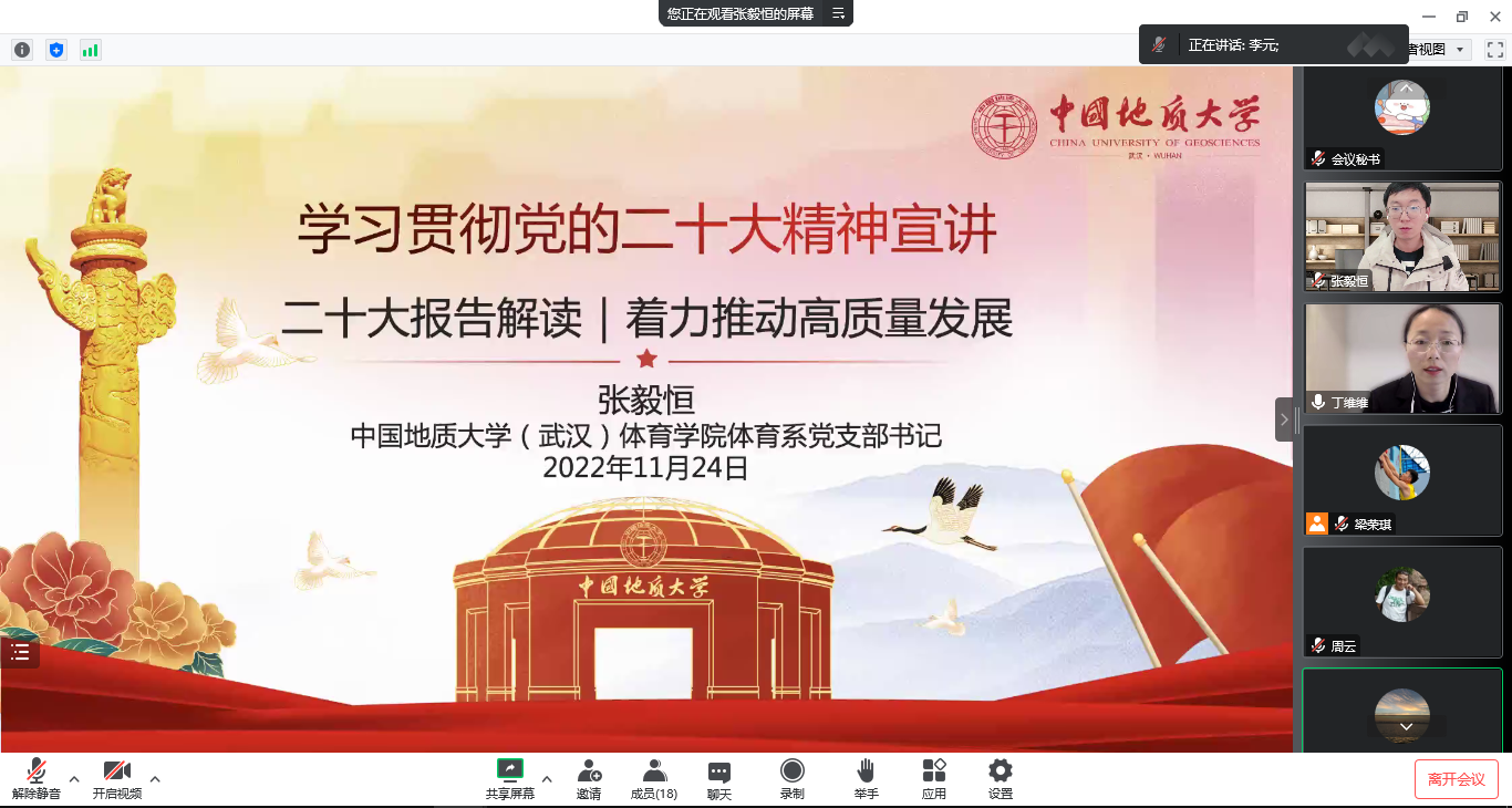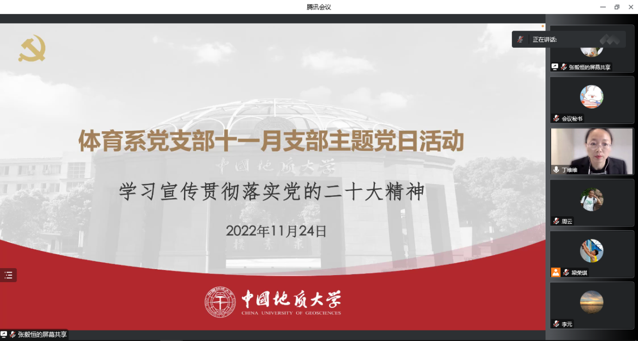 (通讯员:丁维维)11月24日下午,91亚洲精品国产中文体育系党支部组织开展题为“学习宣传贯彻落实党的二十大精神”的主题党日和廉政党课活动。本次学习活动通过线上形式进行,由支部宣传委员丁维维同志主持。