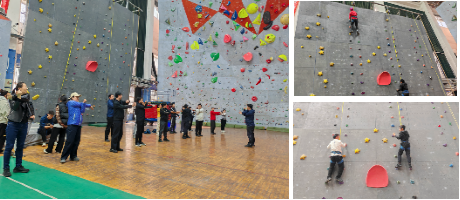 在攀爬过程中,相互鼓励、相互支持,充分展现出坚韧不拔的毅力和勇于突破自我的精神。攀岩项目的体验,将党建活动与体育锻炼有机结合,不仅让大家在运动中释放了工作的压力、增加了体育锻炼的兴趣,更增强了团队凝聚力与向心力。攀岩体验结束后,湖北国土资源职业学院基础课教学部党支部成员参观了我校校史馆。校史馆内丰富的历史资料和详细的讲解,生动展现了学校的发展历程与深厚的文化底蕴,让参访的党员们对学校有了更全面、深入的了解。