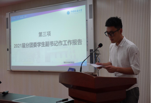 2021届分团委学生副书记闫伟作分团委工作报告。2021届分团委紧紧围绕“培养一流户外人才”的目标,基于我院学生特点,立足户外运动学科特色,持续推进学生的思想教育、学风建设、养成教育和职业发展等重点工作。
