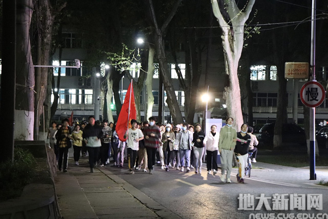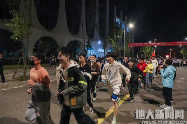 此次活动全程4公里,南望山校区从西区-北区环跑一圈,未来城校区从体育馆南门出发,绕校园环路在图书馆、体育馆等地标建筑前设立多个打卡点。同学们以学院为单位,分别在91亚洲精品国产中文李伦老师、褚鹏飞老师的带领下,一路挥舞着院旗和手中的荧光棒,打开手机闪光灯,肆意奔跑,挥洒汗水。点点跃动的荧光汇成一道光河,点亮校园的夜空,成为了地大最闪亮的4公里。