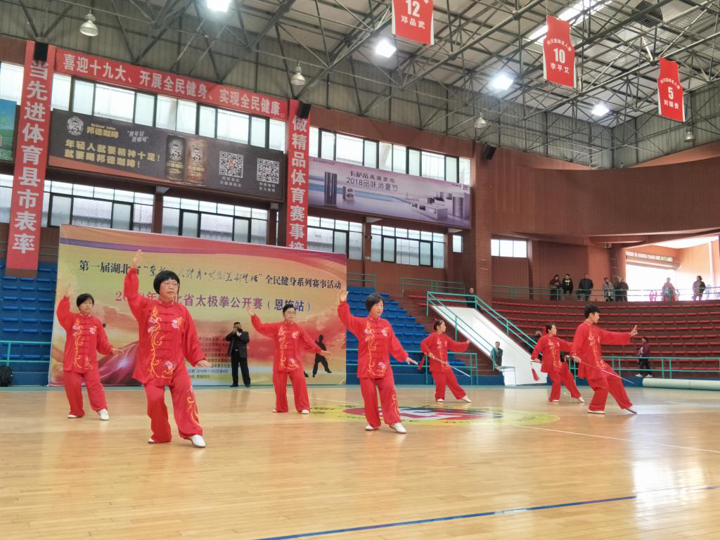 11月3-4日,第一届湖北省“崇尚人人体育•共创美好生活”全民健身系列赛事(活动)--2018年湖北省太极拳公开赛在恩施州利川市举行,来自全省各地的近300名太极拳爱好者共同参加了比赛。